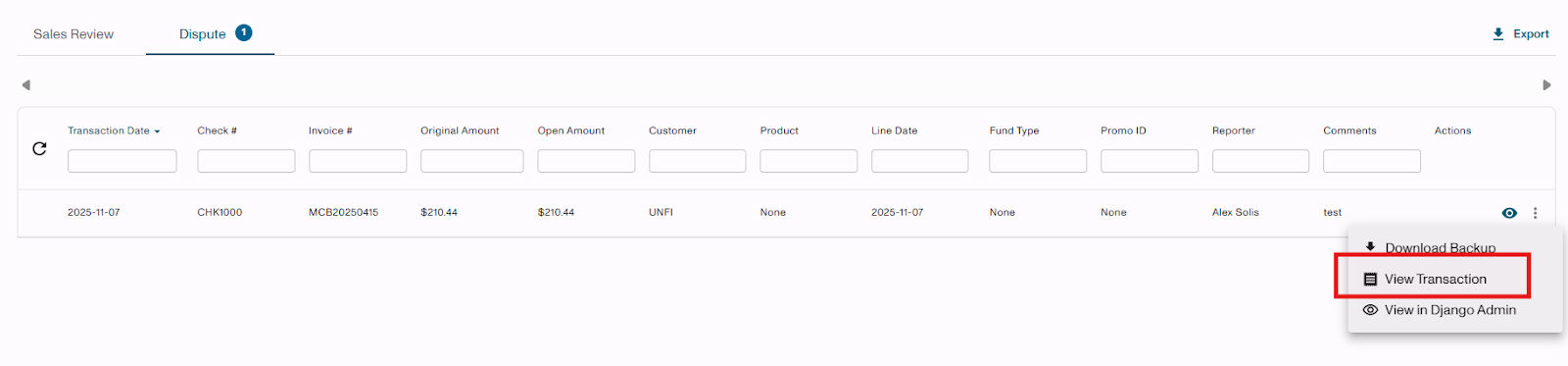 - Toggle between Sales Review and Dispute tabs
