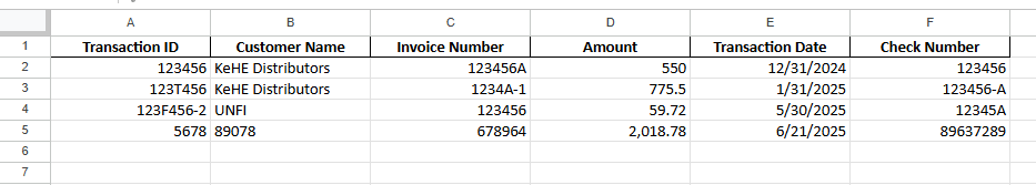 - Customer Name - The payer customer (the name of the first receiver on the check/payment)