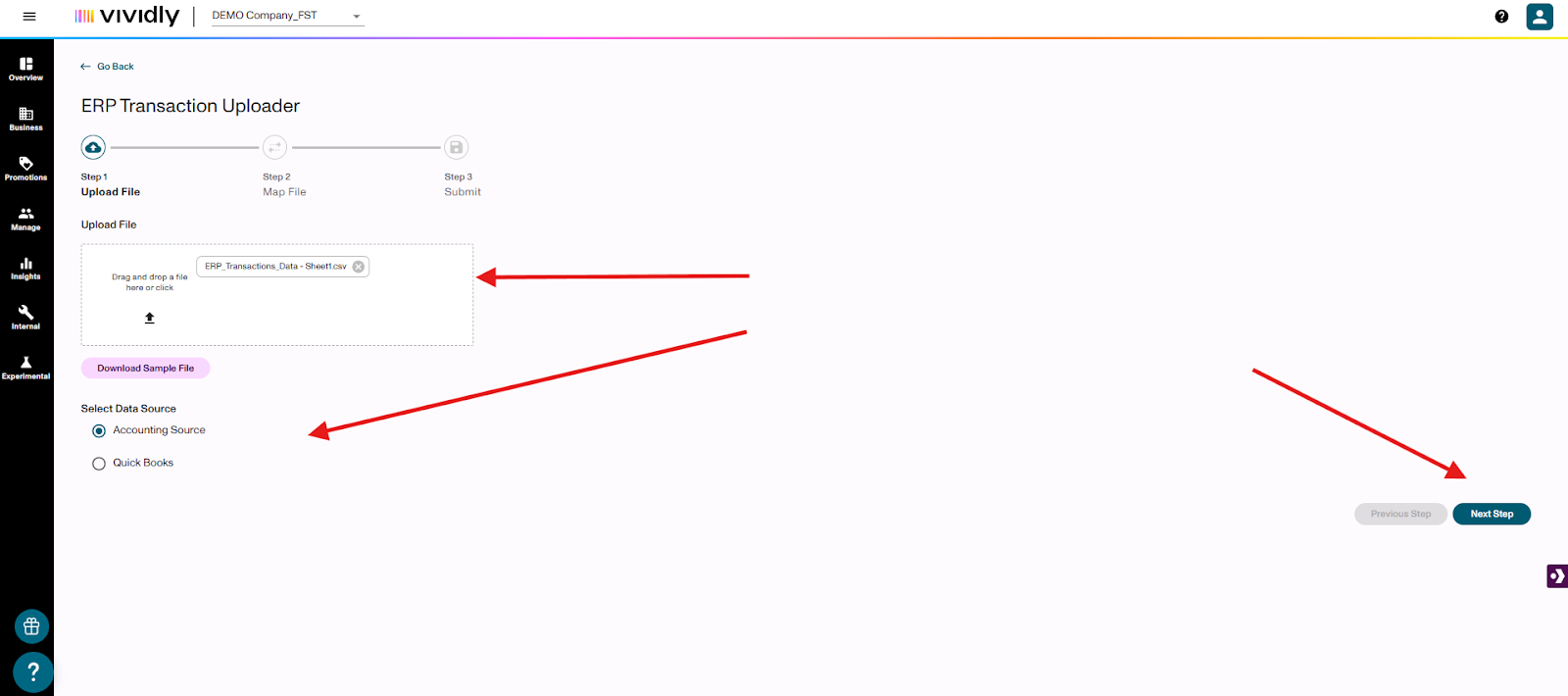 Note: You may not need to manually upload ERP Transactions if you have created an API Integration between Vividly and your ERP System.