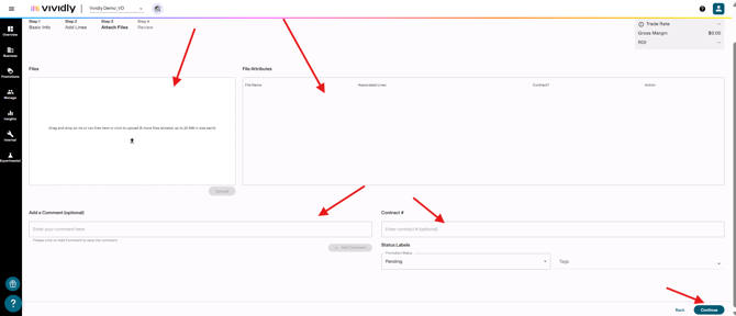 On Step 3, manage supporting documentation, internal comments, categorization tags, and promotion status.