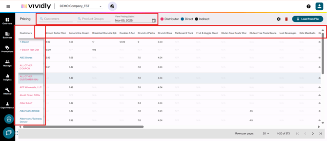 “Customers” search filter: Filters pricing view to show only selected customer(s) and their associated pricing.
