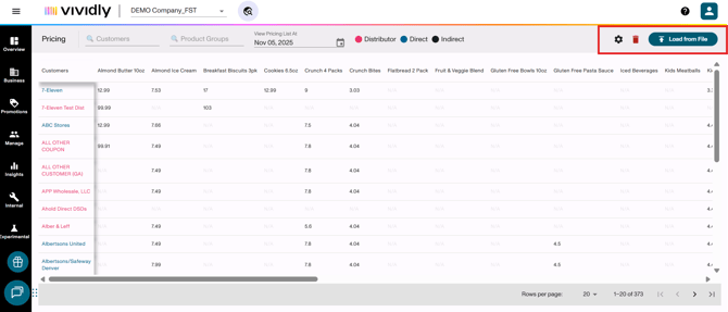 “Load from File” button: Bulk upload tool for adding or updating multiple pricing entries simultaneously via Excel file.
