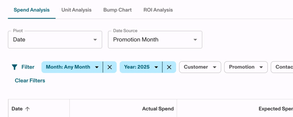 - These updates are limited to the Spend, Unit, and ROI tabs - the bump chart page is not affected.