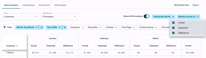 - Intuitive multi-select options in the Spend, Unit, and ROI tabs.