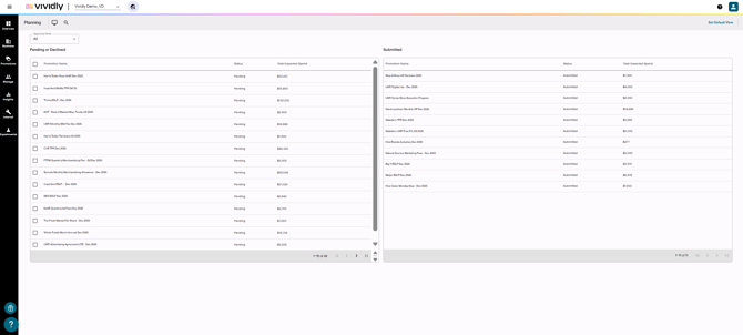 Planning is the core view where users create, configure, and manage trade promotions. Not only that, it is the most complex of all the sections. Main management of promotion planning happens in this page since the rest of the sections are filtered lists of promotions according to their status. There’s a lot of sections that will be outlined and defined in this section. For starters, Planning subsection has different view, each with different a functionality: