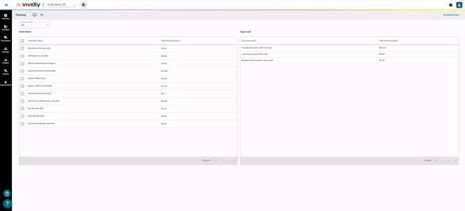 - Approval: Bulk action interface that enables approvers to review and approve (or decline) multiple submitted promotions simultaneously, streamlining the approval process for high-volume promotion planning.